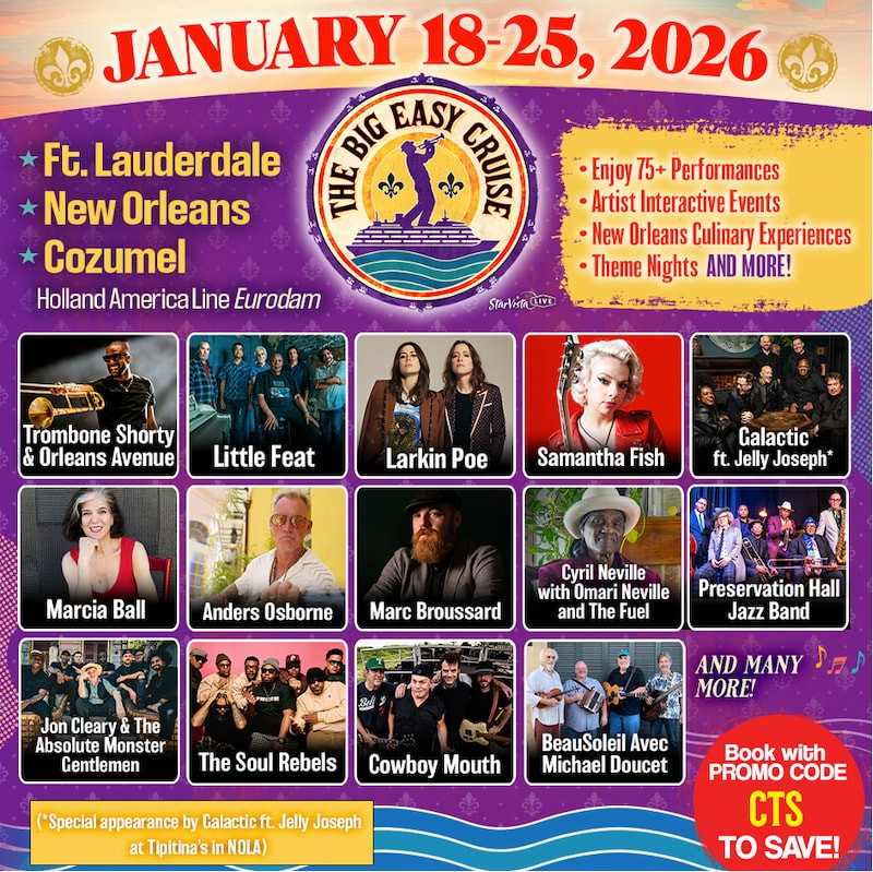 Book your cabin for The 2026 Big Easy Cruise now with code CTS to save!
